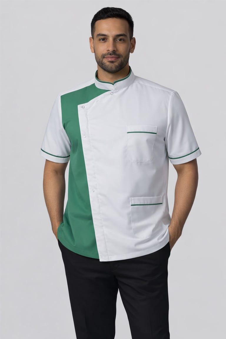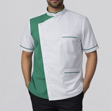 "Shop high-quality half-sleeve doctor aprons style with greencontrast for comfort and mobility. Ideal for warmer climates, they ensure professional hygiene and a polished look."