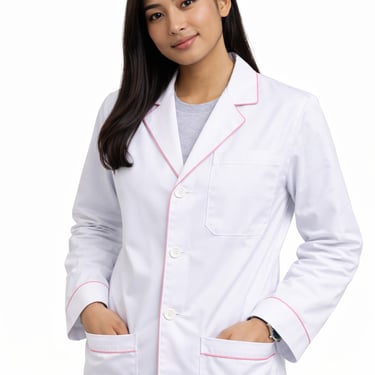 "Shop high-quality full-sleeve doctor aprons style with pink contrast for comfort and mobility. Ideal for warmer climates, they ensure professional hygiene and a polished look."