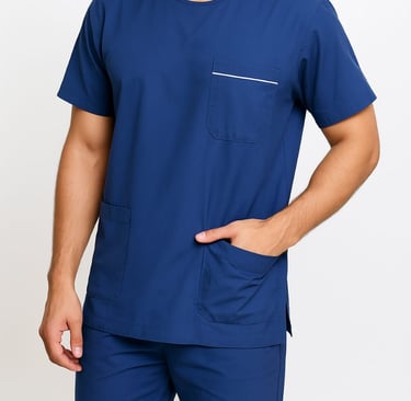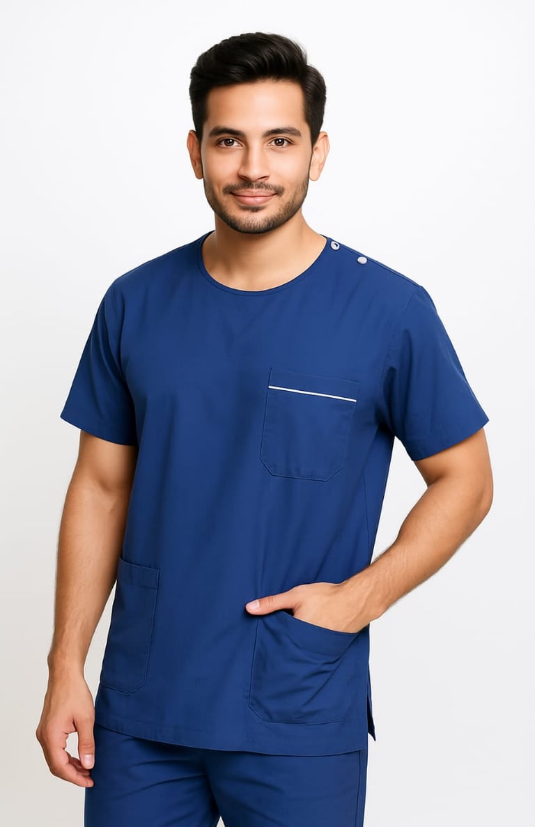 "Discover the versatile doctor Navy Blue scrub set with shoulder open, designed for both men and women. Crafted for comfort, durability, and a professional appearance in healthcare settings."