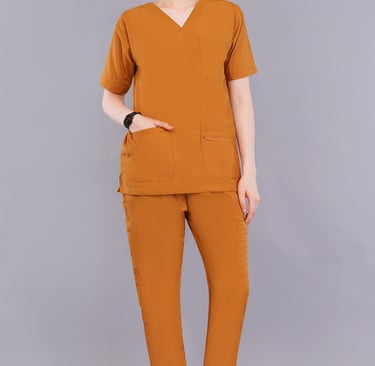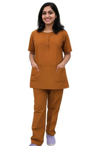 "Discover the versatile doctor rust scrub set with half sleeves and round neck , designed for both men and women. Crafted for comfort, durability, and a professional appearance in healthcare settings."