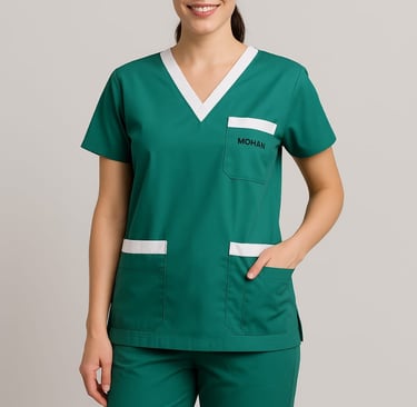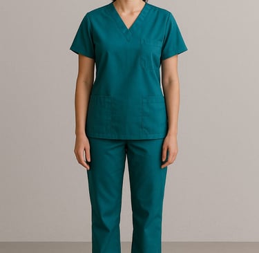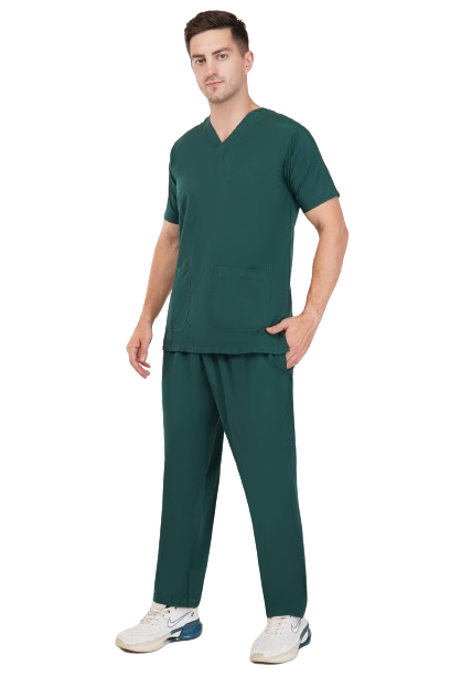 "Discover the versatile doctor bottle green scrub set with half sleeves, designed for both men and women. Crafted for comfort, durability, and a professional appearance in healthcare settings."