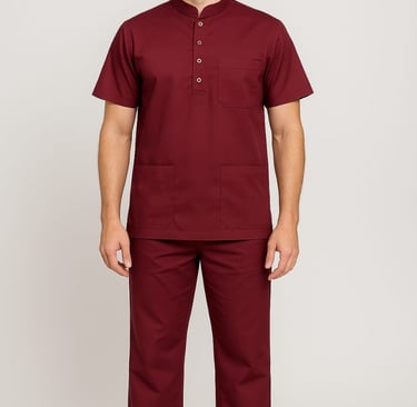 "Discover the versatile doctor maroon scrub set with half sleeves, designed for both men and women. Crafted for comfort, durability, and a professional appearance in healthcare settings."