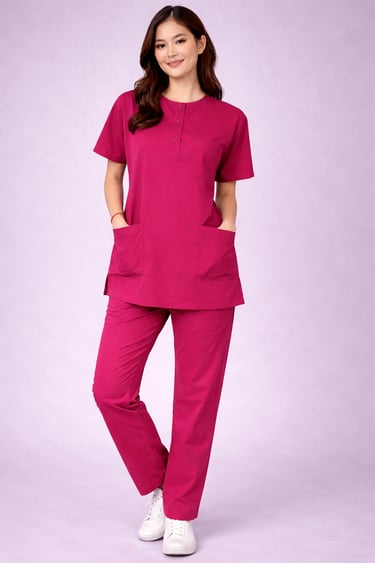"Shop the stylish fuchsia pink scrub with Half sleeves, designed for women. Perfect for medical professionals seeking durability and a professional look."