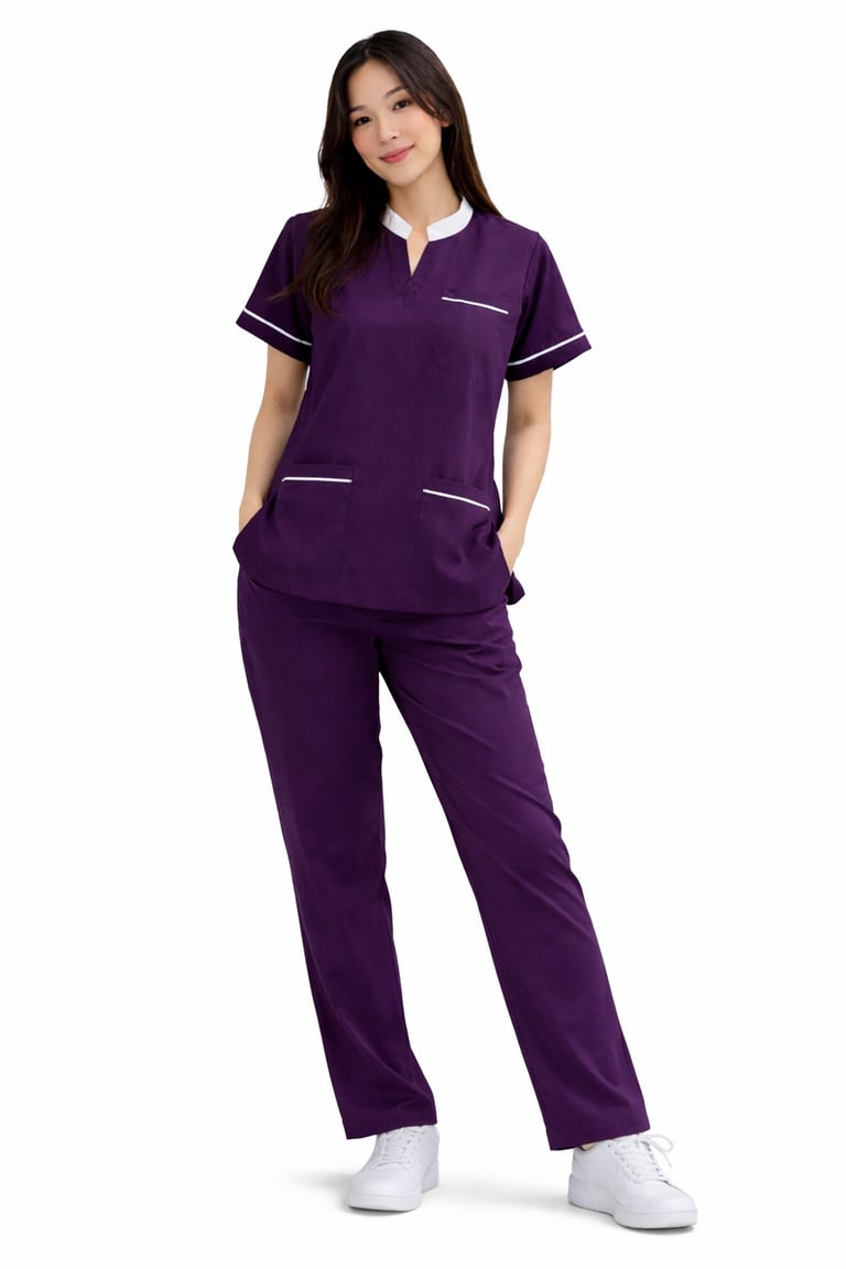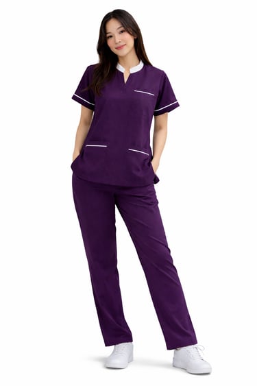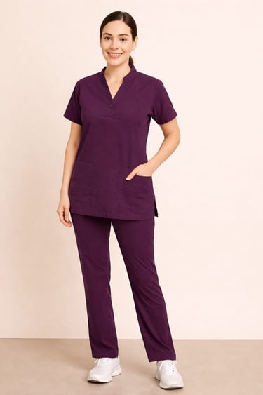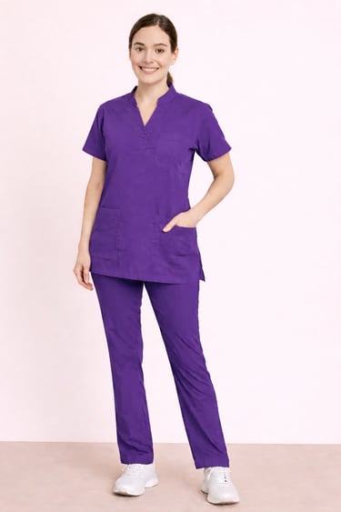 "Shop the stylish purple scrub with Half sleeves, designed for women. Perfect for medical professionals seeking durability and a professional look."