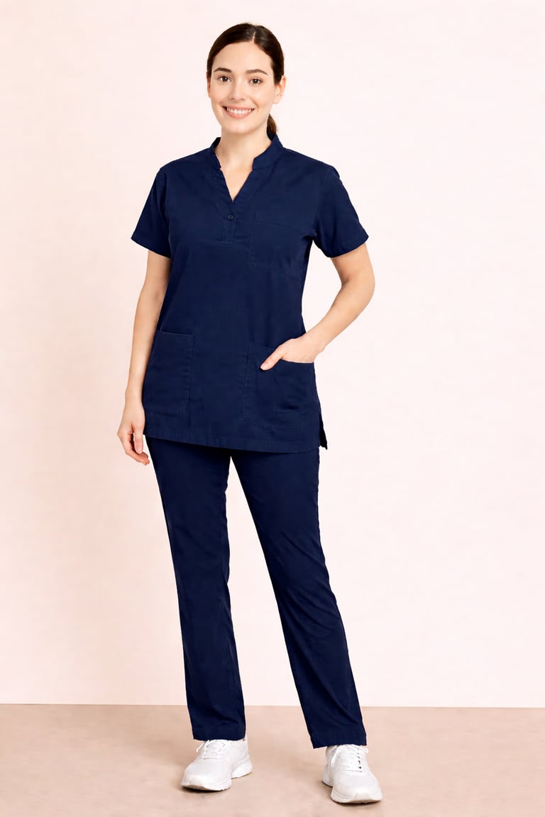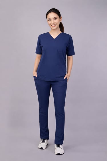 We offers a range of high-quality female scrub sets designed for medical professionals, featuring comfortable, durable, and breathable fabric. These scrubs are available in various colors and sizes, including options for neck pattern & design ( V Neck, Mandarian Collar, Round Neck).