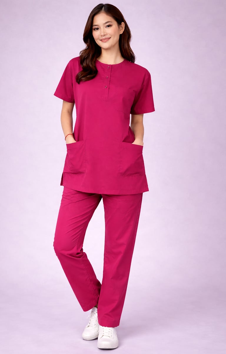 "Shop the stylish Hot pink scrub with Half sleeves, designed for women. Perfect for medical professionals seeking durability and a professional look."