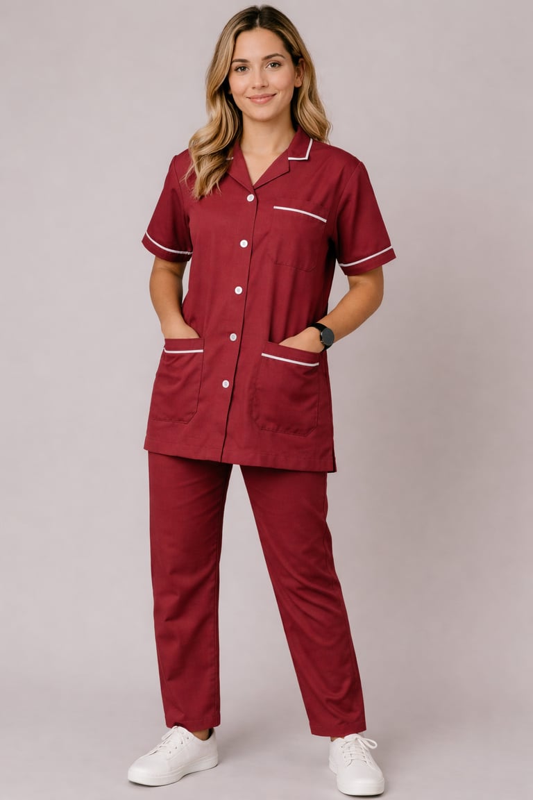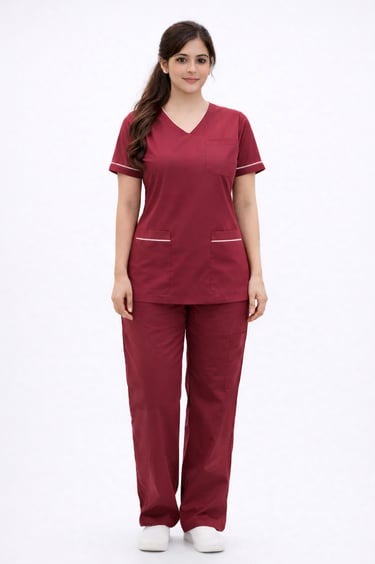 "Shop the stylish Maroon staff dress with Half sleeves, designed for women. Perfect for medical professionals seeking durability and a professional look."
