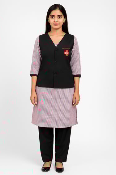 Female Pink Checked Staff Dress