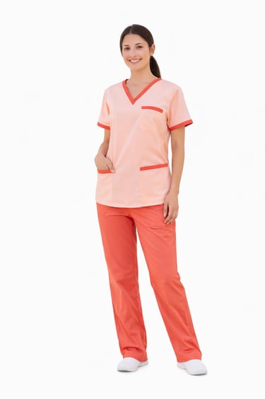 "Shop the stylish coral pink staff dress with Half sleeves, designed for women. Perfect for medical professionals seeking durability and a professional look."