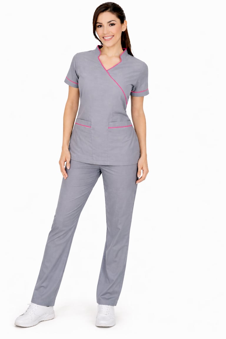 "Shop the stylish grey staff dress with Half sleeves, designed for women. Perfect for medical professionals seeking durability and a professional look."