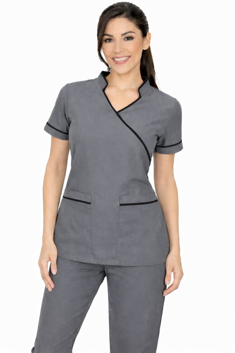 "Shop the stylish Grey staff dress with Half sleeves, designed for women. Perfect for medical professionals seeking durability and a professional look."