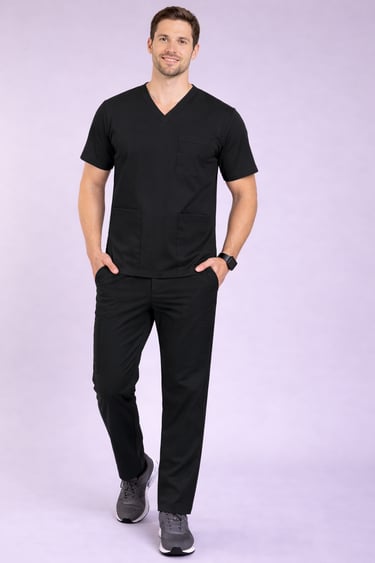 "Shop the black scrub with half sleeves, offering a comfortable and stylish fit for men. Ideal for medical professionals, combining functionality and a professional look."