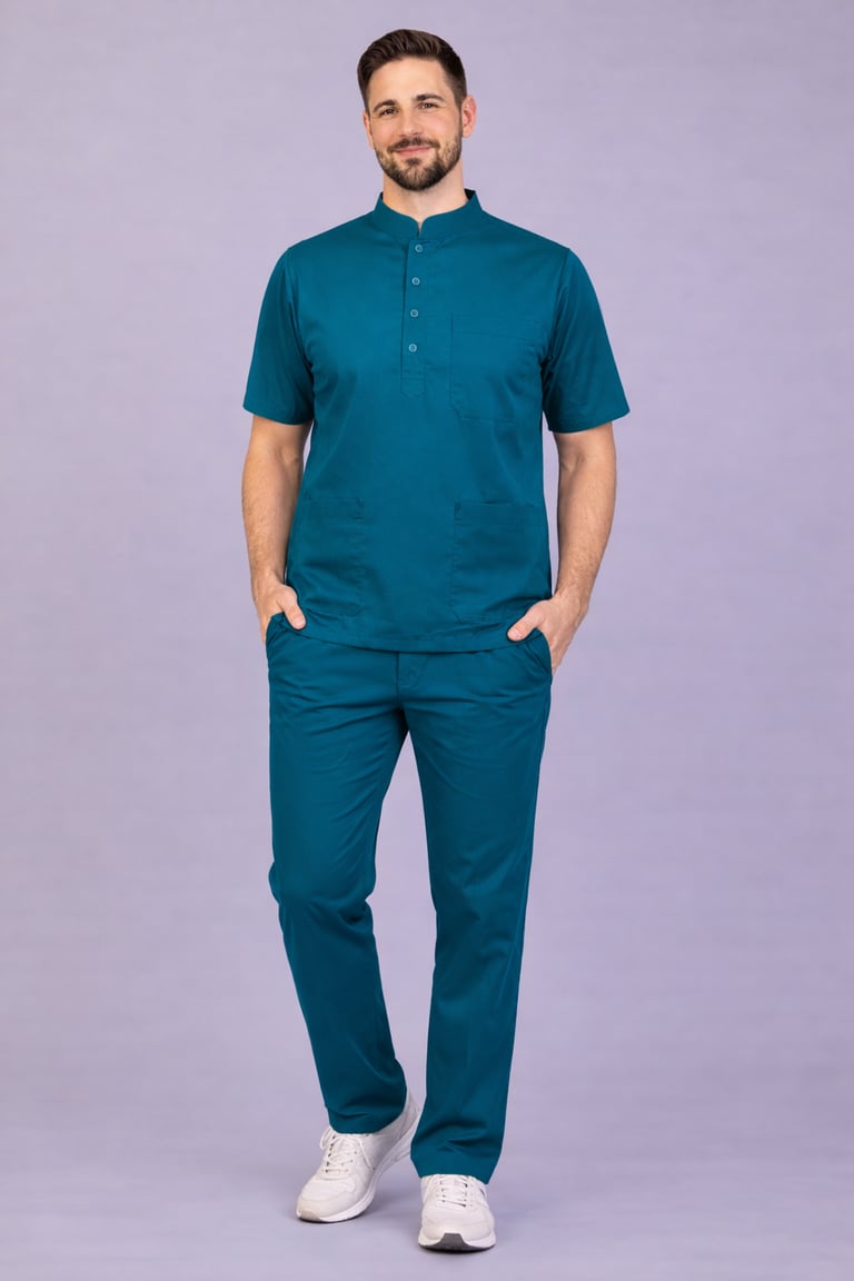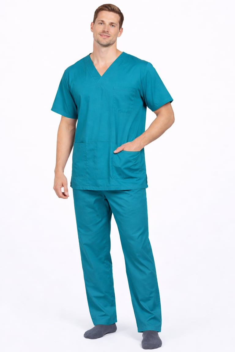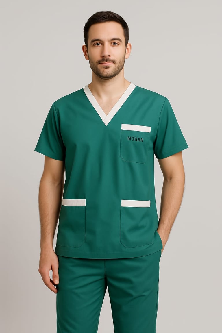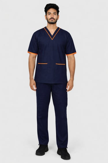 We offers a range of high-quality male scrub sets designed for medical professionals, featuring comfortable, durable, and breathable fabric. These scrubs are available in various colors and sizes, including options for neck pattern & design ( V Neck, Mandarian Collar, Round Neck).