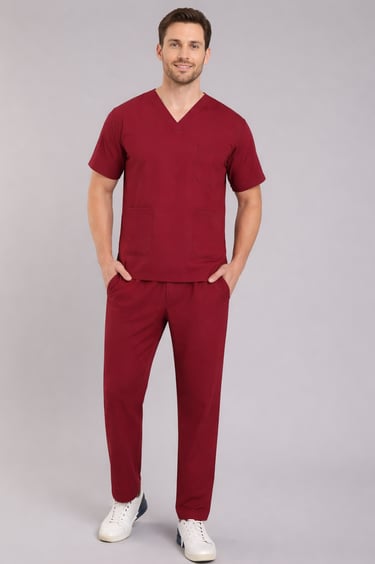 "Shop the stylish maroon scrub with Half sleeves, designed for men. Perfect for medical professionals seeking durability and a professional look."
