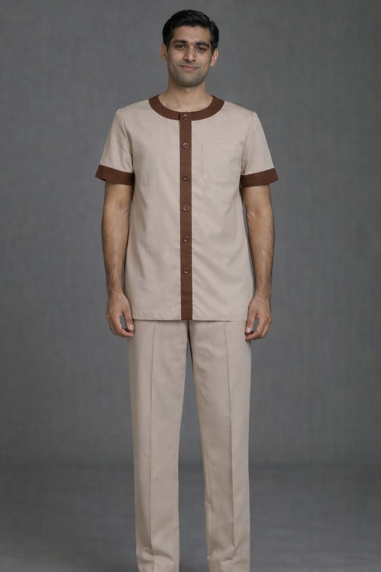 "Shop the stylish Beige staff dress with Half sleeves, designed for both men and women. Perfect for medical professionals seeking durability and a professional look."