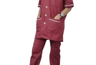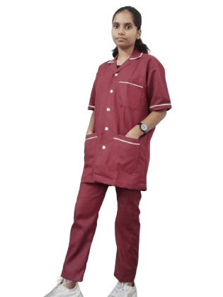 "Explore our maroon staff dress, crafted for elegance and practicality. Perfect for medical and corporate environments, it features premium fabrics, functional pockets, and a stylish design for a professional and confident appearance."