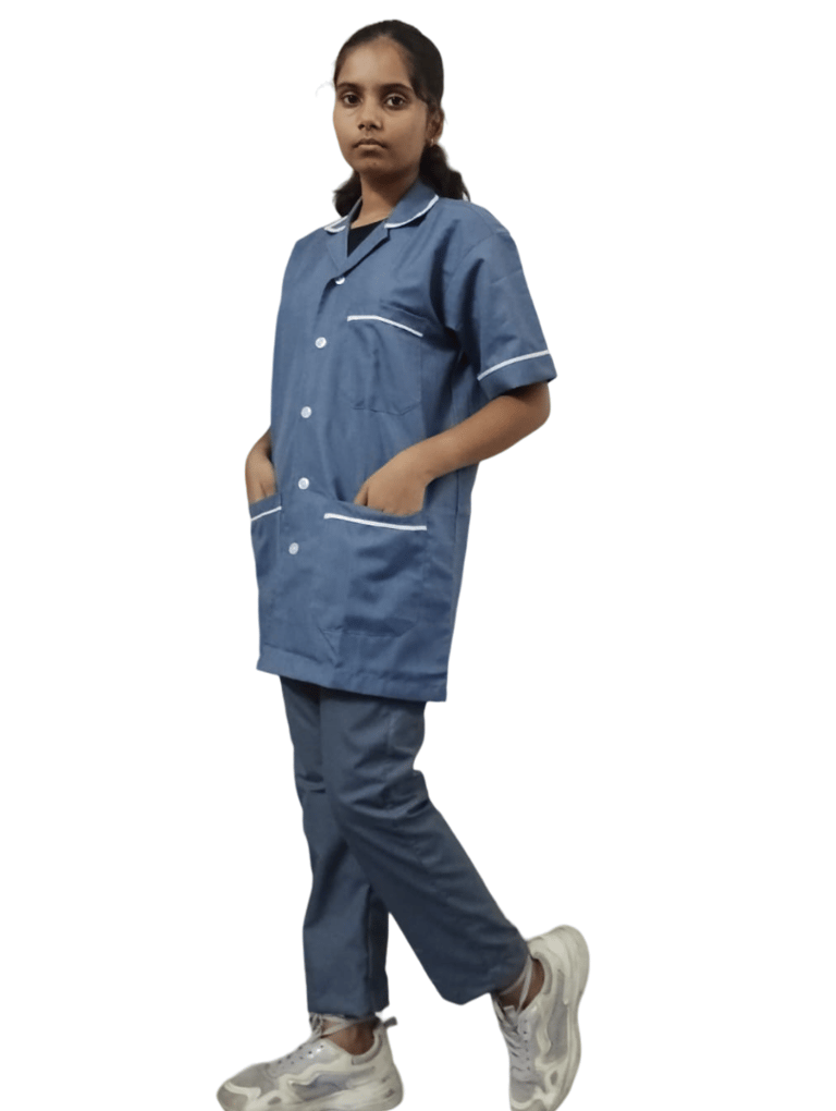 "Discover the perfect grey staff dress designed for comfort, durability, and style. Ideal for medical and corporate settings, featuring breathable fabrics, functional pockets, and a professional look to enhance efficiency and confidence."