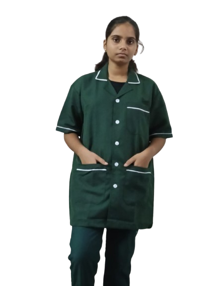 "Upgrade your uniform with our bottle green staff dress, blending style and functionality. Perfect for medical and corporate use, it offers premium fabrics, ample pockets, and a professional look for confidence and comfort all day."
